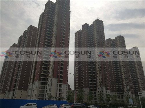 超前涂料 CCTV黃金展位合作伙伴鄭州中建七局森林上郡工地施工面積16萬平方,為了追求高端社區(qū)的需要,能從視覺上彰顯整個建筑的高雅與莊重之美,選擇了天然真石漆做為外墻專用漆。