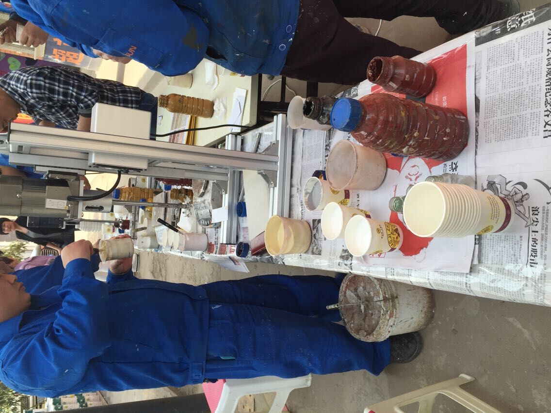 2015年4月10號(hào)下午,剛上班,負(fù)責(zé)多彩漆調(diào)色的幾位超人就已經(jīng)集合到比賽區(qū),桌面上也都擺上了各種需要用的器具,然后這幾位超人開(kāi)始各自拿著自己需要的器具開(kāi)始調(diào)配起來(lái)。