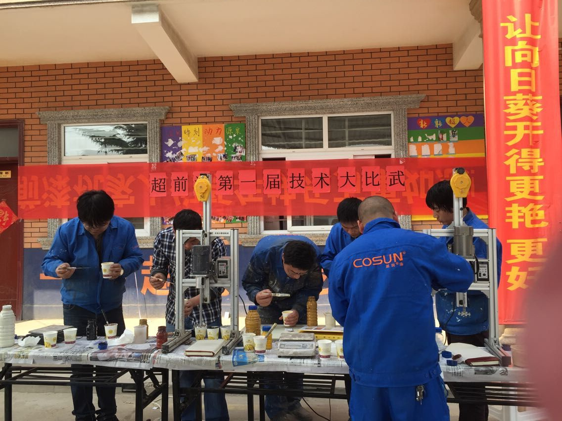 從一點(diǎn)開(kāi)始一直到三點(diǎn)半才結(jié)束,幾位超前的超人們也都調(diào)配出自己滿意的外墻多彩漆樣板,交出滿意的答卷。以后,超前涂料會(huì)經(jīng)常舉行這樣的比賽活動(dòng),調(diào)動(dòng)超人們的學(xué)習(xí)精神,給客戶提供更好的服務(wù),也請(qǐng)各位客戶多多關(guān)注我們超前http://www.fi11sp82.com